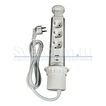 Блок розеток выдвижной прямоуг. 12А, 3 поста, серебр., провод 1,8м с вилкой