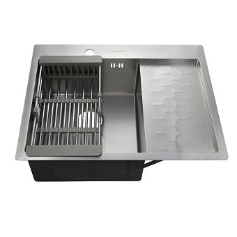 Мойка 63х50 см левая толщина 3,0 х 0,8/200 мм сифон с переливом + корзина