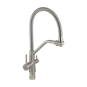 Смеситель д/кухни С - образный излив вытяжной, из нержавеющей стали SUS 304, цвет САТИН арт.13069