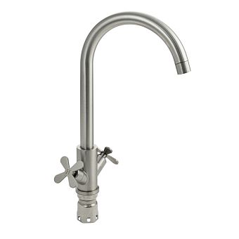 Смеситель д/кухни С-обр. гусак Magnus сатин,с фиксацией на жестком изливе, нерж.сталь304, арт 91112
