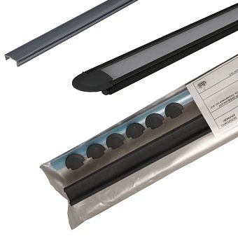 Комплект алюм. профиль ВСТР. 2207W ЧЕРНЫЙ, 3м, 22х7мм, 2 диффузора (молочн.+черн.), 3+3 заглушки