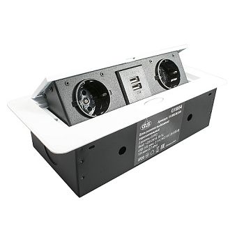 Блок розеток встр. круг. d120мм, 16А, 3 пост, бел., 1USB, 1Type-C, провод 1,8м