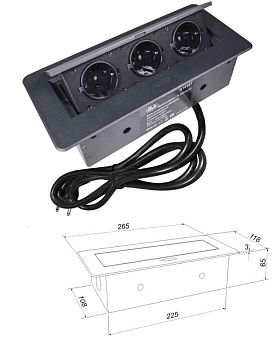 Блок розеток выдвижной прямоуг. 12А, 3 поста, черн., провод 1,8м с вилкой