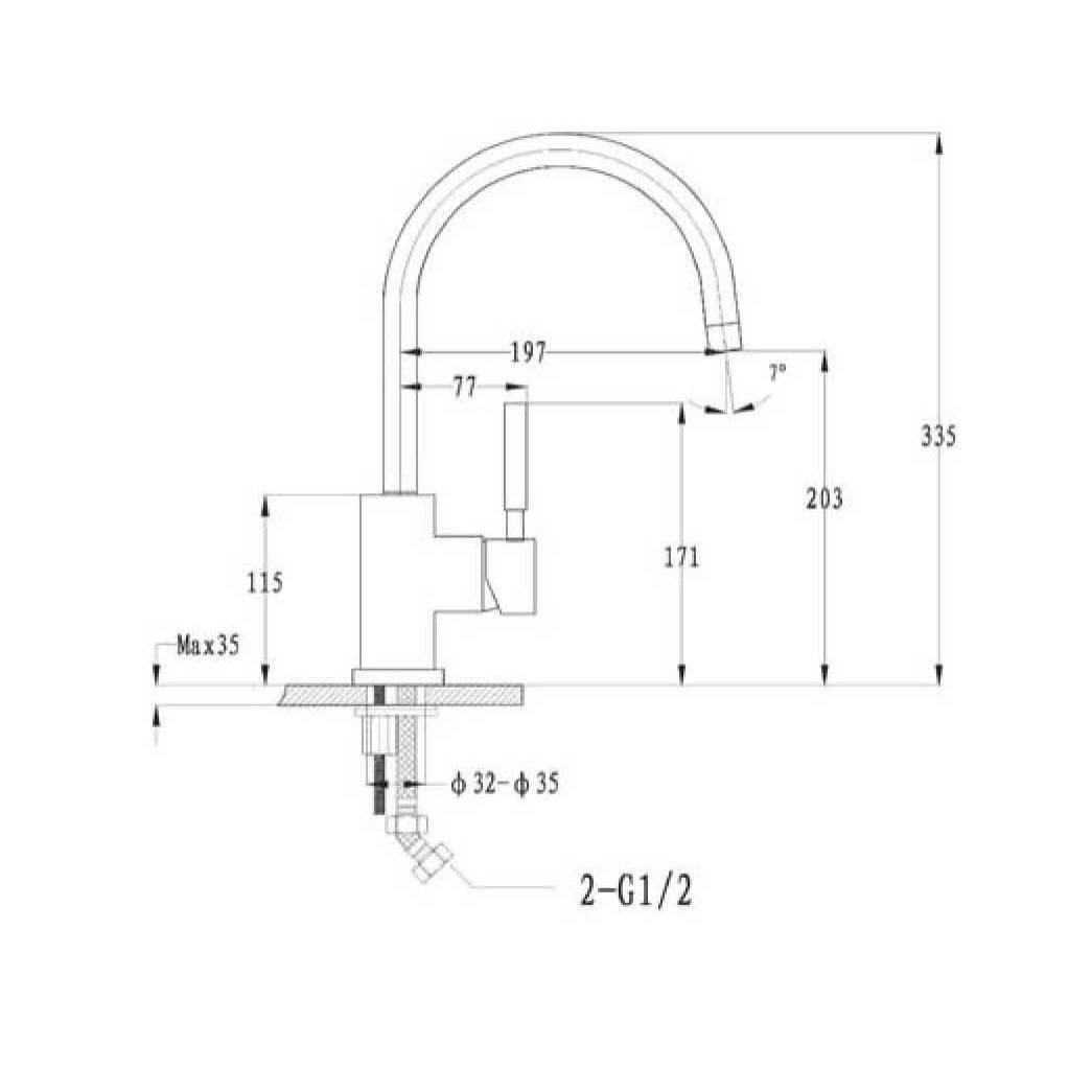 GF 3023 Смеситель д/кухни боковой D-35мм(чёрный) 308