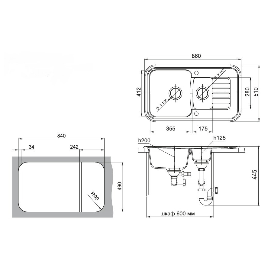 Общий размер мойки