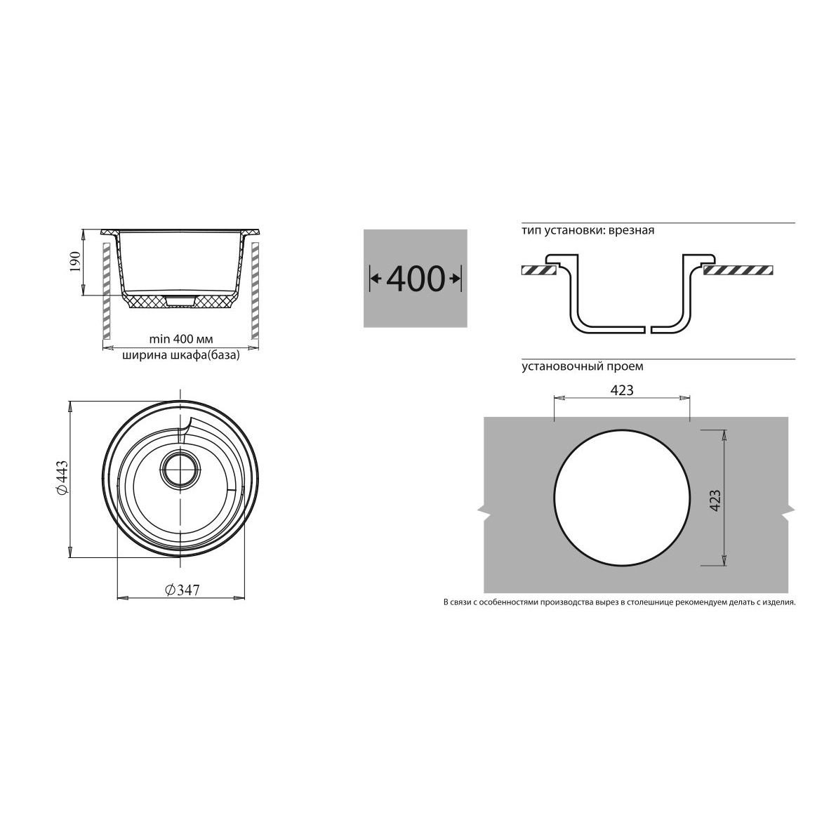 Общий размер мойки