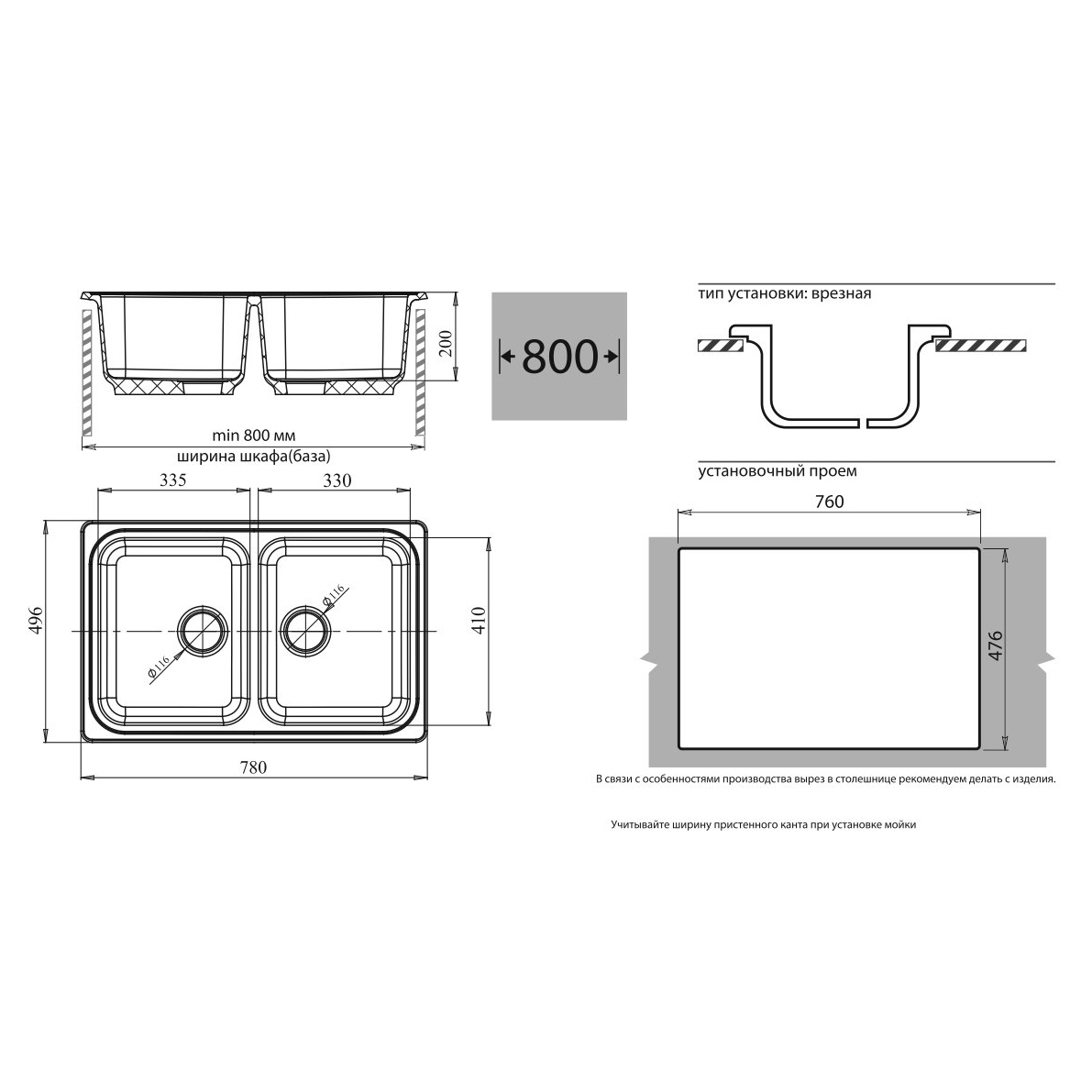 Общий размер мойки