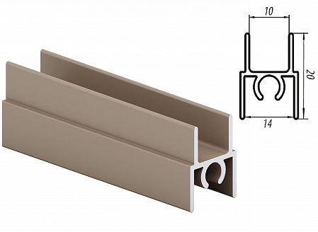 Горизонтальный верхний профиль монтируется на торец верхнего среза двери раздвижной системы дверей для шкафа-купе. Эта деталь также придает дверному полотну эстетичный вид и служит в качестве декоративной планки.