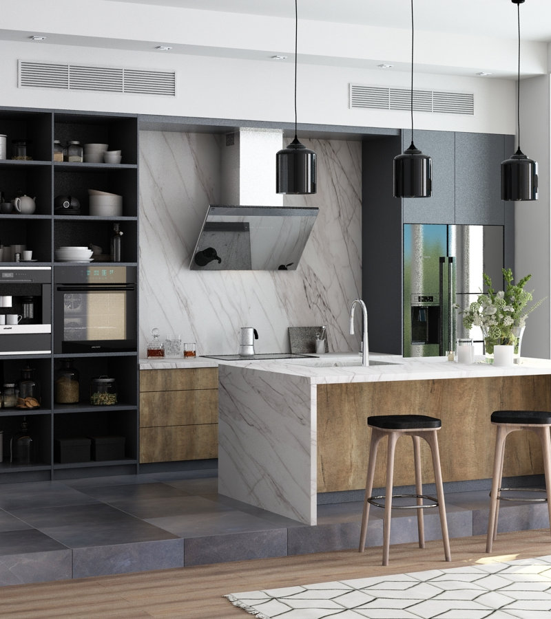 Столешница Ева 4100х600х40 9012 Мрамор Неаполь стоун