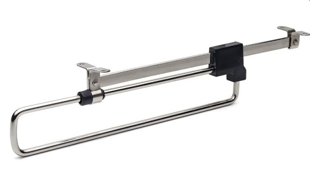 Выдвижные штанги обычно используют в шкафах с маленькой глубиной, они позволяют повесить большее количество вещей. Крепятся к нижней части полок и располагаются перпендикулярно шкафу. Выдвигаются из шкафа за счет подвижной части, на которой размещаются вешалки для одежды.