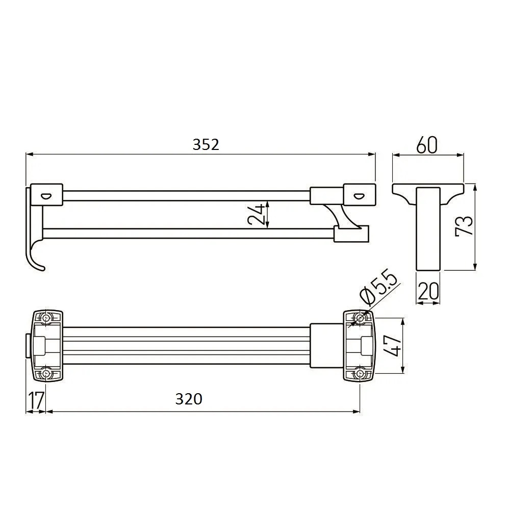 Данный товар имеет габаритный размер 352 мм в задвинутом состоянии, а длина выдвижной части составляет 320 мм. Это делает вешалку GTV особенно удобной для использования в небольших шкафах, так как она занимает минимальное пространство, когда не используется.
