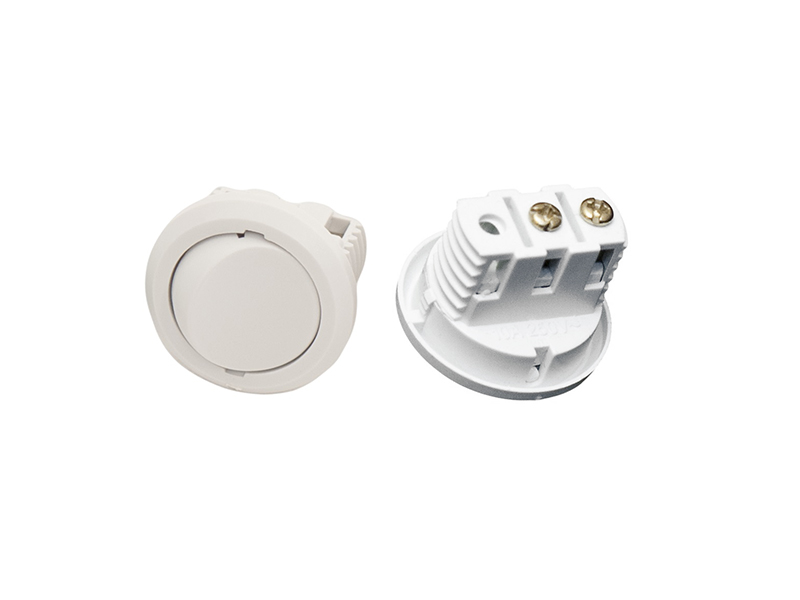 Выключатель D27 запрессовывается в отверстие диаметром 25мм, сделанное в ДСП, ДВП или другом аналогичном материале, из которого изготовлена мебель. Подсоединение проводов к выключателю – под винт. Максимальное коммутируемое напряжение – 250В, ток –до 5А.